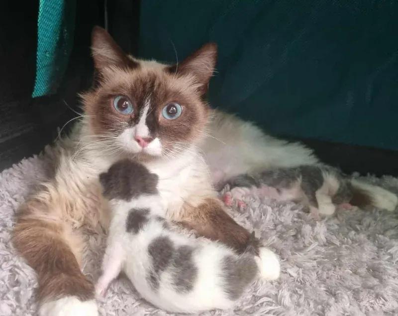 寄养人每隔两小时就会把小猫放到戈尔达的怀里让它们吃奶,期间多次尝试给小猫进行管饲,但每次都遭到小猫们的强烈反抗。