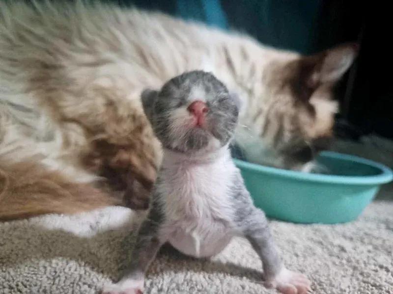 救援人员尽了最大的努力挽救小猫,最终四只小猫中还是有两只不幸夭折,只剩下一只奶牛猫埃里和一只灰背猫亚瑟在努力求生。